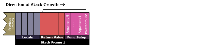 Whereas a function with RVO enabled will use the parent stack frame (or an arbitrary block of memory) to store its own local, avoiding the copy: