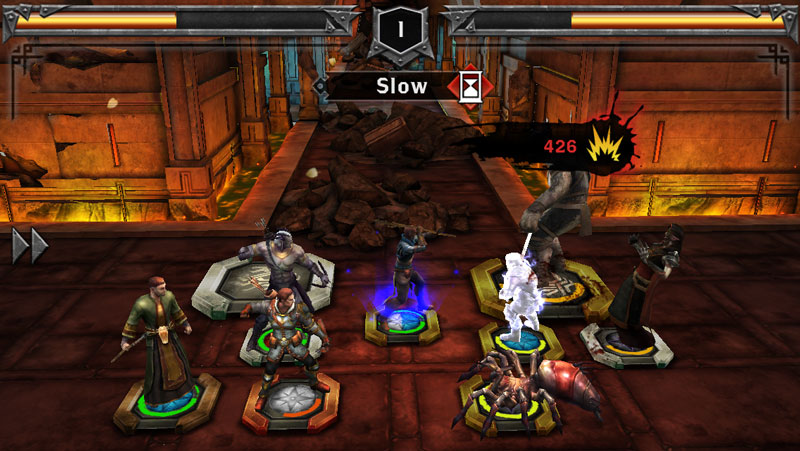 HoDA is essentially like one of those collectible monster card game things that Asians and arch-nerds play; except unlike games of that mould, it adventurously removes all strategy, charm and decisions from the mix. You have a collection of heroes (represented as low poly models of ‘miniatures’) who “do ‘battle'” with enemy miniatures, in the sense that you get to watch them undergo a series of random and erratic “attacks” until one side is left without any dudes. It’s an appalling re-imagining of something that could work (squad based pokemon style combat) – dumbed down to the point where it may as well be a dice roll, something that would be more aesthetically and morally pleasing.